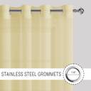 क्लॉथ फ्यूजन पर्दे में बड़े करीने से किनारों को ट्रिम किया गया है, सिलाई पर विशेष ध्यान दिया जाता है ताकि यह सुनिश्चित किया जा सके कि शानदार लुक देने के लिए कोई ढीले धागे और असमान हेम्स / किनारे नहीं हैं। पर्दे 10 स्टेनलेस स्टील ग्रोमेट्स के साथ आते हैं जो इसे ऊपर रखना और नीचे ले जाना बेहद आसान बनाता है। ग्रोमेट्स का इनर डायमीटर 1.6 inch है जो उन्हें लगभग सभी रॉड्स के साथ कम्पैटिबल बनाता है। cm-ट्रांसपेरेंट , लाइट फिल्टरिंग तकनीक के साथ आते हैं जो न केवल आपके कमरे में कैरेक्टर जोड़ता है, बल्कि लाइटिंग में बैलेंस भी रखता है क्योंकि यह कमरे में प्रवेश करने वाली धूप को आंशिक रूप से फिल्टर करता है, जो आपको कठोर UV किरणों से बचाता है।