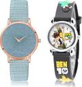 Dial Colour : Grey And White ; Band Colour : Grey And Black ; Case Shape : Round ; Band Material : Genuine Leather And Plastic ; Case Diameter : 32 And 29 mm ; TIMOXIDE Best Quartz Embossed Designer Dial And Ben 10 Kids Grey And Black Colour Analog Genuine Leather And Plastic Belt 2 Watch Combo For Women And Girls - GM330-GC34#