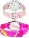 Dial Colour : Pink And White ; Band Colour : Pink ; Case Shape : Round ; Band Material : Genuine Leather And Plastic ; Case Diameter : 33 And 29 mm ; TIMOXIDE Modern Unique Simple And Dora The Explorer Kids Pink Colour Analog Genuine Leather And Plastic Belt 2 Watch Combo For Women And Girls - GM352-GC193#
