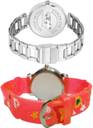 Dial Colour : White ; Band Colour : Silver And Red ; Case Shape : Round ; Band Material : Metal And Plastic ; Case Diameter : 36 And 29 mm ; TIMOXIDE Modish Traditional Simple Chain And Doll Kids Silver And Red Colour Analog Metal And Plastic Belt 2 Watch Combo For Women And Girls - GM237-GC80#