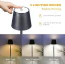 Portable & Battery Operated: No cords, no hassle! This cordless design lets you take the lamp anywhere you need it, whether it’s your kitchen table, bedroom, or outdoor patio. Stepless Dimming & 3 Color Modes: Customize the ambiance with smooth, stepless dimming control. Choose from warm, neutral, or cool light settings to suit your mood or environment – perfect for intimate dinners, reading, or creating a relaxing atmosphere. Long-Lasting Battery Life: With a long-lasting built-in rechargeable battery, this lamp will shine bright for hours on a single charge, making it perfect for extended use during parties, camping trips, or late-night study sessions. Durable & Stylish Design: Crafted with a modern metal frame, this lamp adds an elegant touch to any space. Its minimalist yet sophisticated look fits perfectly in any setting – be it a restaurant, coffee shop, or your home. Versatile Use: Whether you need ambient lighting for your bedroom, a night light for your kids, or atmospheric lighting for outdoor events, this lamp is designed to meet your needs. Its compact size makes it easy to carry and place wherever you desire. Energy Efficient: Equipped with advanced LED technology, this lamp provides bright, consistent light while being energy-efficient, making it both eco-friendly and cost-effective.