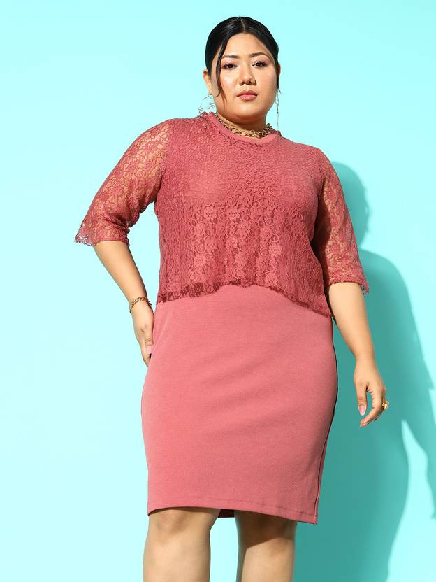 कर्व बाय कैज़ुअली महिलाओँ के लिए गुलाबी बॉडीकॉन ड्रेस