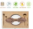 These Placemats from daiDokoro are Non-Slip Insulation Heat-Resistant & Waterproof Stain Resistant Washable Placemat for Dining & Kitchen Table. Made of Vinyl & Polyester, safe to contact with food directly. 10% thicker than a normal placemat and won't crisp, or deform. Ultra-durable, UV resistant, and fadeless for both indoor and outdoor long-term everyday use. These heat-resistant placemats are washable, just wipe off the stains stuck on them, if needed, brush or hand wash in soapy water, and then wipe dry or hang dry, it will dry quickly without fading or shrinking. (Please DO NOT wash in a washing machine). This table mat is precisely woven and hot-pressed with no rough selvage, meanwhile, it can be cut or bent freely without raveling. HEAT-RESISTCANT and SKID-RESISTCANT, provide an effective heat barrier to protect your table. This Washable Vinyl Placemat is definitely a perfect shield and decor for your table in the dining hall, kitchen, restaurant, coffee shop, hotel, or even business office. Not only used as a heat-resistant placemat, but also a skid-proof mat or a dust-proof mat for a worktop or a drawer.