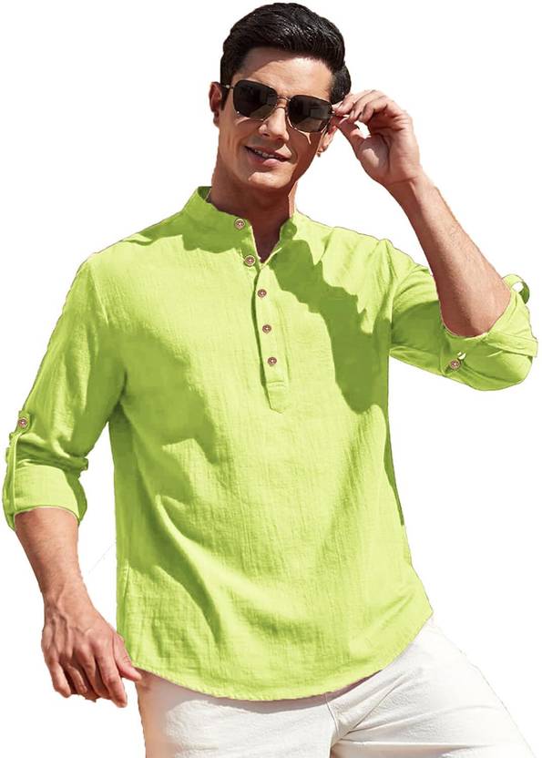 This Cotton Blend short kurta is perfect for men who value style and comfort. Its versatile design makes it ideal for any occasion—festivals, parties, or casual outings. Product Details 📋 👨‍🦰 Gender: Men 🎨 Pattern: Solid 🧵 Design Type: Plain 🔘 Closure: Button 👕 Sleeve: Full Sleeve (Roll-Up Option) ⬆️ Waist Rise: Mid-Rise 🪡 Collar: Mandarin/Chinese ✂️ Hemline: Curved 🌿 Fabric: Cotton Blend 📏 Product Length: Short 📦 Pack of: 1 Material & Care 🧺 Fabric: Cotton Blend Wash: Suitable for hand wash and machine wash. How to Style 🎯 Pair it with dark-wash denim or linen trousers for a casual look. Dress it up with a pair of churidar or slim-fit pants for festive occasions. Add leather sandals or loafers and a wristwatch for a classy finish. Roll up the sleeves for a relaxed vibe during daytime events. This short kurta seamlessly blends traditional elegance with modern styling, making it a wardrobe essential for every man! 👌"