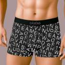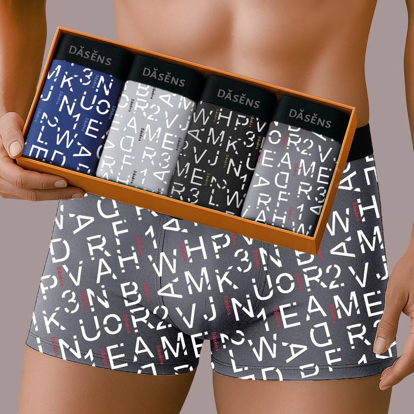 These men's trunks feature a comfortable, stretchable fabric and an elastic waistband with the brand name. They come in various colors, each adorned with a subtle, repeated glass-like pattern and small dots. Ideal for everyday wear, these trunks offer both comfort and style. They can be worn under jeans, trousers, shorts, or any casual bottom wear.