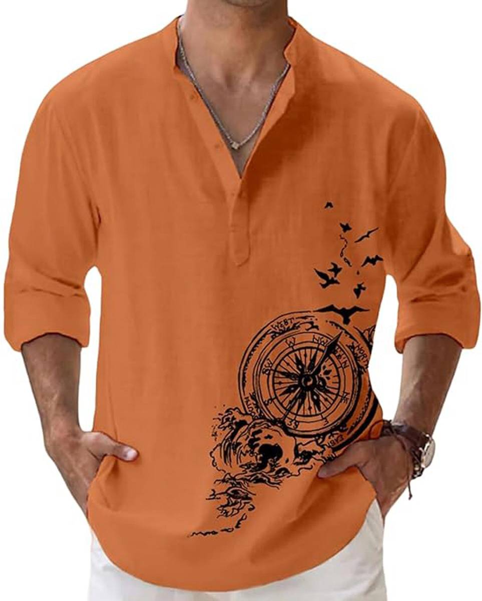 डील्मो पुरुषों के लिए सॉलिड स्ट्रेट कुर्ता (नारंगी, काला)