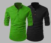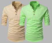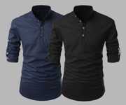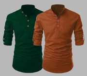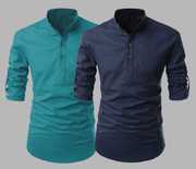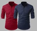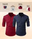DEEMOON Men Solid Flared Kurta (Red, Blue)