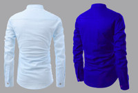 DEEMOON Men Solid Flared Kurta (Light Blue, Dark Blue)