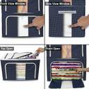 DHK Best Of 55 Liter (Pack Of 1) Cloth Storage Bags Living Storage Boxes Oxford Foldable Stackable Cloth Organizer with Metal Frame, Window & Carry Handles for Bedding Clothes, Closet, Wardrobe Organizer TWFD-1562F (Blue)