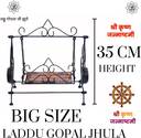 Elevate your spiritual space with the DIGIAPSTECH Wooden Metal-Wood Lord (Radha Krishna) Kanha Thakur Bal Laddu/Ladoo Gopal Swing Palana Jhula Jhoola, a magnificent manifestation of devotion and artistry. This ornate temple swing, standing at an impressive 35CM in height and crafted with meticulous care, is the quintessential Janmashtami decor. As you prepare for the divine celebration of Krishna's birth, this wooden Krishna swing becomes the focal point of your home temple. The Bal Gopal Jhula, also known as Kanha Jhula, embodies the essence of Krishna worship, inviting you to swing your beloved Laddu Gopal gently. Designed to complement your puja room, this metal and wood jhula, also known as Thakur Ji Ka Jhula, adds a touch of spiritual elegance. Its intricate detailing and big size make it a visual delight, perfect for daily puja rituals or special occasions like Janmashtami. With its intricate carvings, this ornate jhula transforms your temple into a place of devotion and serenity. The wooden swing for Krishna showcases your dedication to the Lord and serves as a decorative temple swing that's both functional and visually captivating. Elevate your daily puja with this spiritual home accent. Crafted with love, this handcrafted jhula embodies the essence of divine worship, making it an essential part of your religious artifacts collection. Immerse yourself in Krishna bhakti as you adorn your Indian temple with this divine masterpiece. This metal swing for temple rituals is not just an ornament for your pooja room but a symbol of your unwavering faith. Let it be your companion in your spiritual journey, enhancing your devotion during festivals like Janmashtami. Invite the blessings of Lord Krishna into your home with this exquisite wooden Krishna Palana. This metal-crafted jhoola is a testament to your dedication and a reminder of the Krishna bhajan that resonates within your heart.