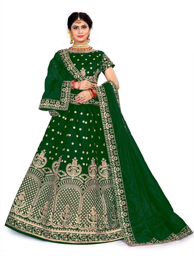 Embroidered Semi Stitched Lehenga Choli (Green)