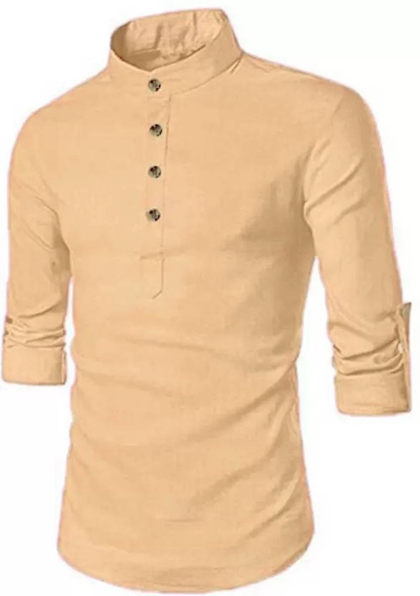 डिम्मी पुरुषों के लिए सॉलिड A-लाइन कुर्ता (बेज)