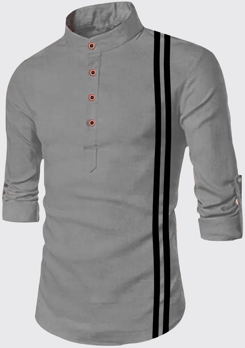 डिम्मी पुरुषों के लिए सॉलिड A-लाइन कुर्ता (ग्रे)