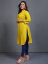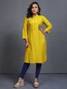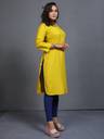 divyani Women Solid Cotton Rayon Straight Kurta (Yellow)