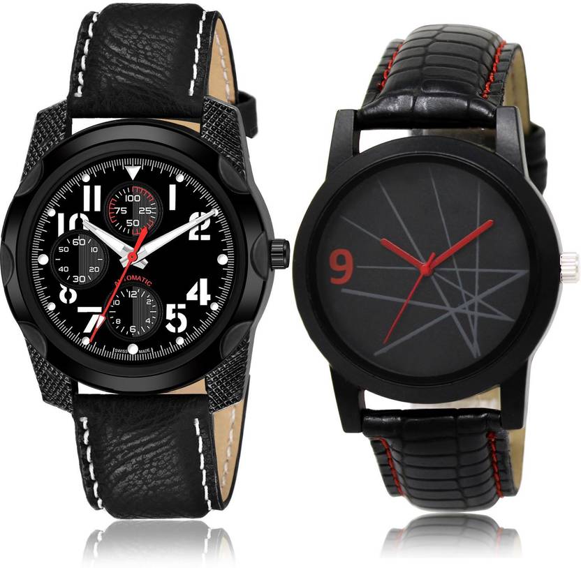 Dial Colour : Black ; Band Colour : Black ; Case Shape : Round ; Band Material : Genuine Leather ; Case Diameter : 45 And 30 mm ; DMAGNATON Modern Quartz professional and sports Black Colour Analog Genuine Leather Belt 2 Watch Combo For Boys And Men - S151-BL46.8