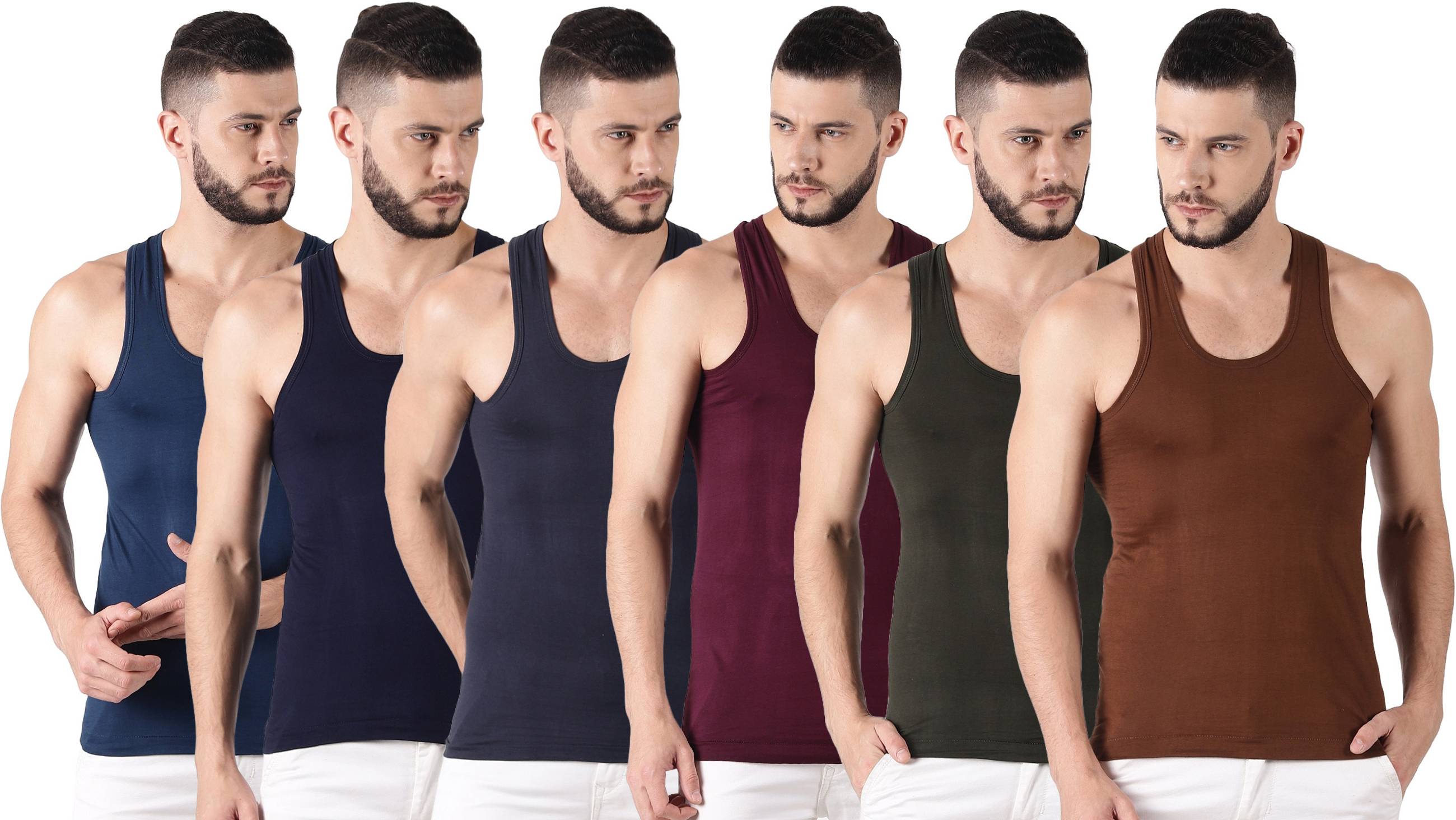 Dollar Lehar Men Combed Cotton Round Neck Vest -Pack of 6- Colour may Vary