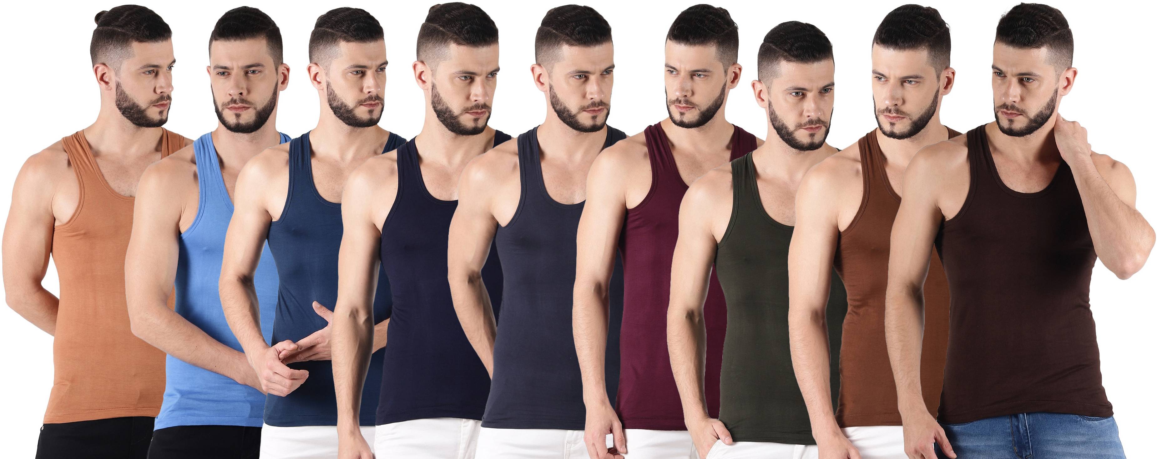 Dollar Lehar Men Combed Cotton Round Neck Vest -Pack of 9- Colour may Vary