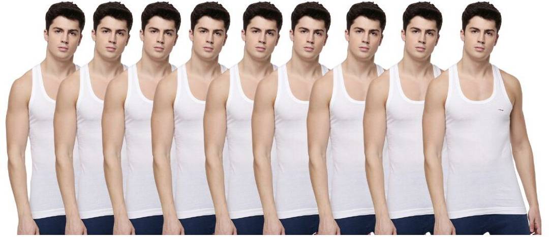 Dollar Lehar Men Combed Cotton Round Neck Vest -Pack of 9- White