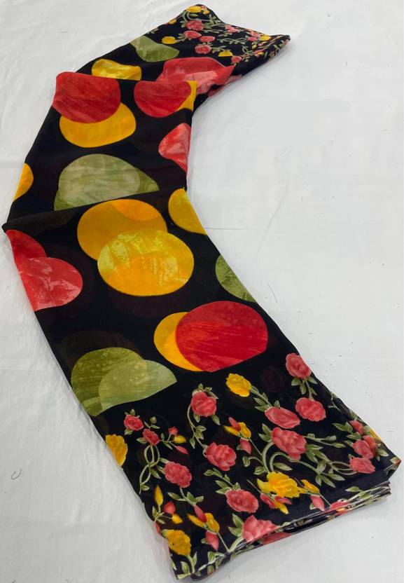 प्रिंटेड बॉलीवुड जोर्जेट साड़ी (काला)