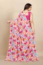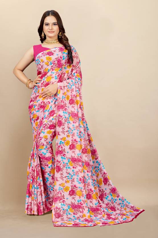 Dori प्रिंटेड रोज़ पहनने वाली जोर्जेट साड़ी (गुलाबी)