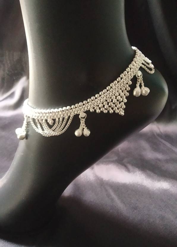 ड्रामा क्वीन फैशन Gota Chandi Triangle Jhalar Anklet सिल्वर पायल (2 का पैक)