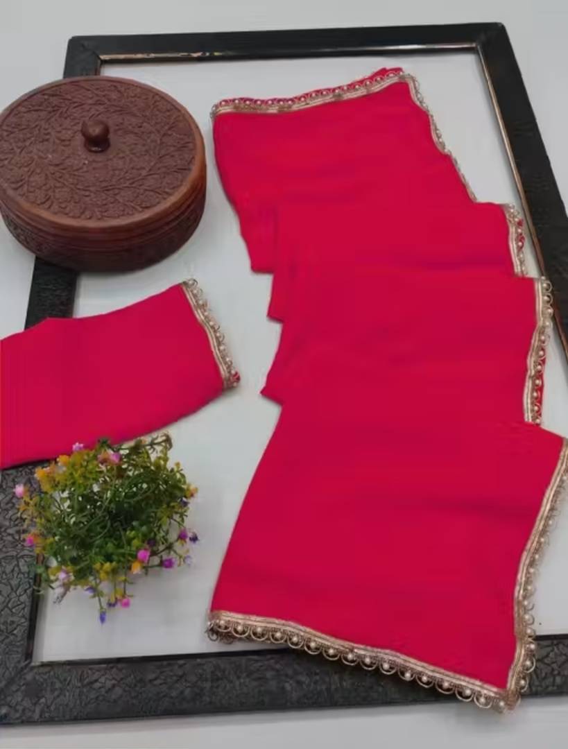 Uma Enterprise Solid/Plain Bollywood Georgette Saree (Pink)