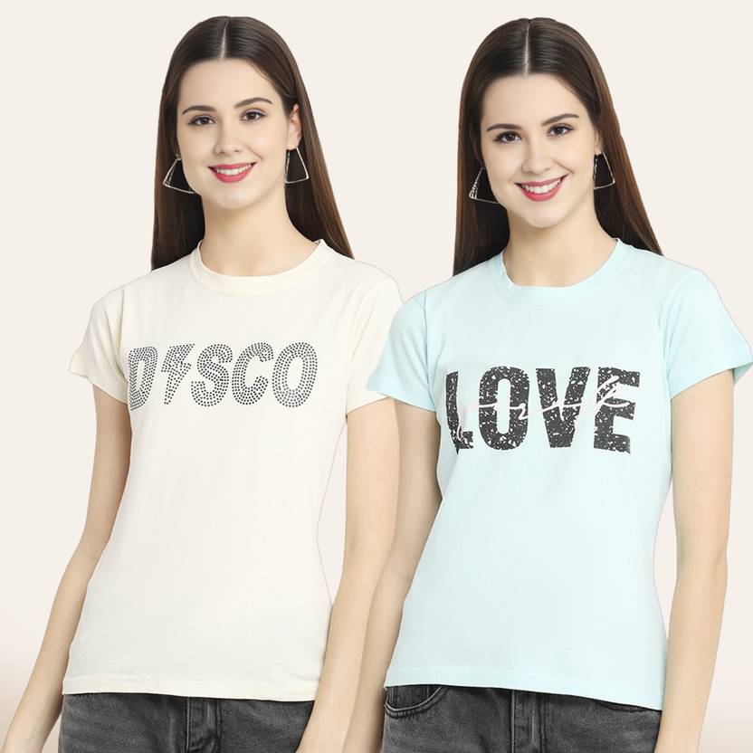 DreamBe Pack of 2 Women Printed Round Neck Pure Cotton Multicolor T-Shirt