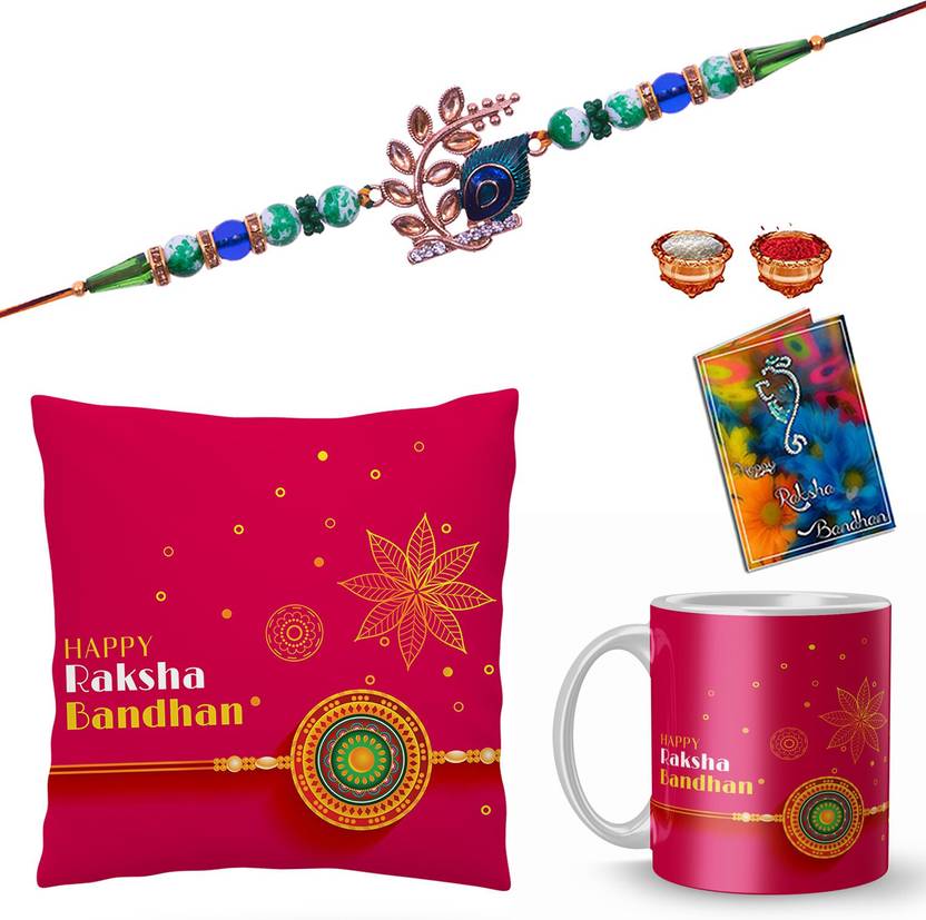 Rakhi, Mug, Cushion, Chawal Roli Pack, Greeting Card