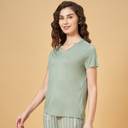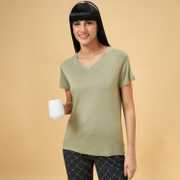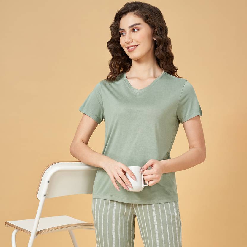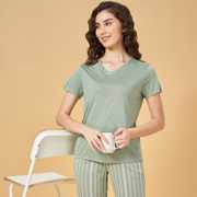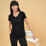 Find your Zen in our laid-back tops. This sleepwear top has a V-neck, half sleeves and a relaxed body in a solid shade. Crafted with excellent quality knit material, this top will become your ultimate choice for lounging.