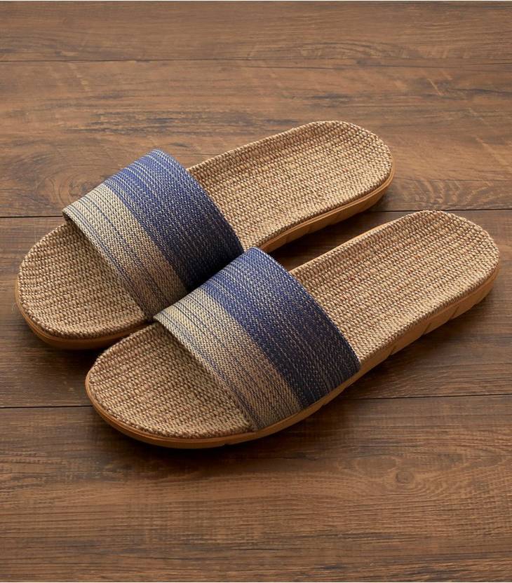 DRUNKEN Slipper For Men's Flip Flops House Slides Home Fashion Linen Non Slip Outdoor Cotton Blue स्लाइड
