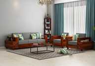 DRYLC FURNITURE Solid Sheesham Wood Five Seater Sofa Set With Drawers For Living Room/ Office || Fabric 3 + 1 + 1 Sofa Set (Warm Walnut, DIY(Do-It-Yourself))