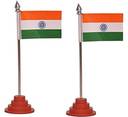 02 PCS Indian Single Side Table OR Car Deshboard Flag Steel Body Plastic Stand