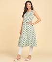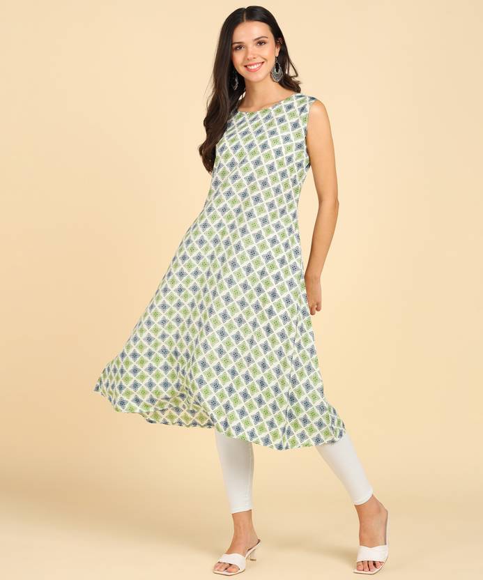 DSK स्टुडियो महिलाओं के लिए प्रिंटेड A-लाइन कुर्ता (बहुरंगी)