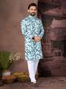 Men Printed, Patchwork Cotton Blend Straight Kurta (Multicolor)