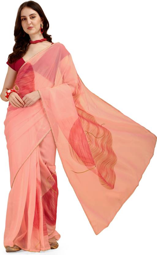 Dungrani Hand Painted Bollywood Organza Saree (Orange)