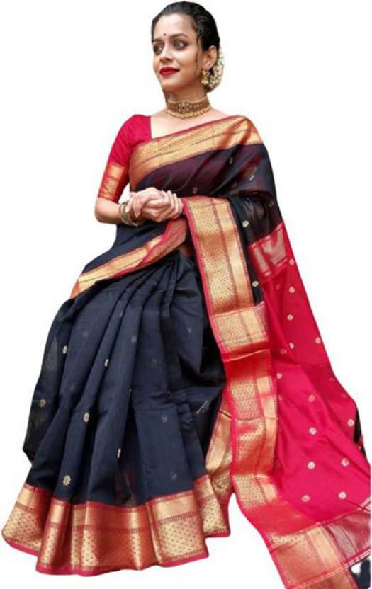 Self Design Maheshwari Cotton Silk Saree (Black)