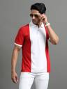 Men Colorblock Polo Neck Polyester Red T-Shirt