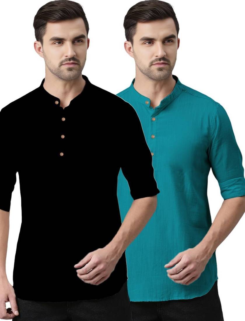 Men Solid Pure Cotton Straight Kurta (Beige)
