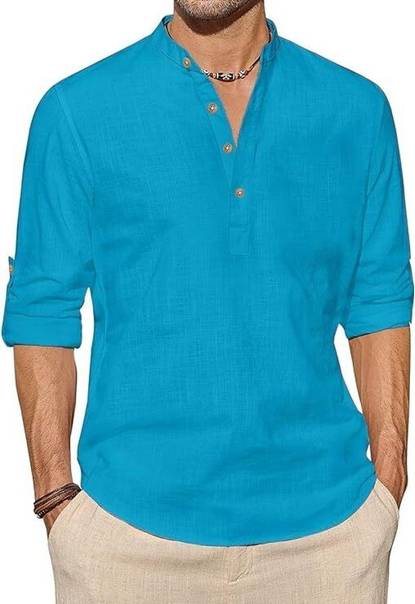 Men Solid Cotton Blend A-line Kurta (Light Blue)