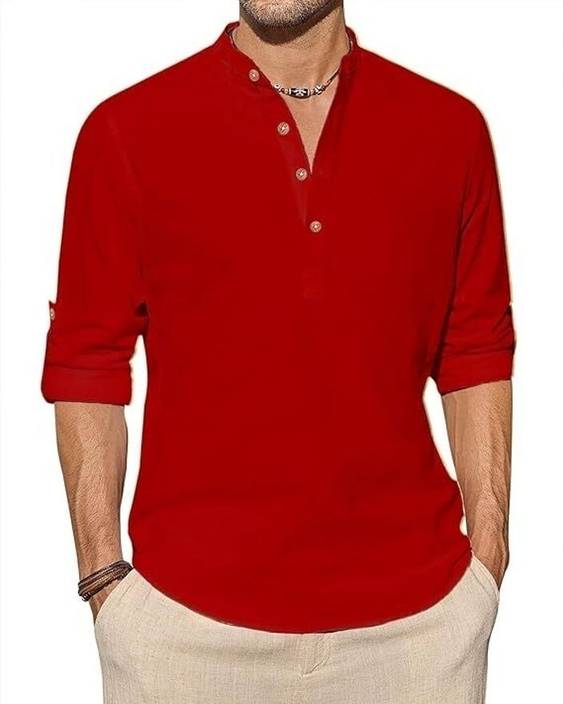 GUYS HUBB Men Solid Straight Kurta (Red)