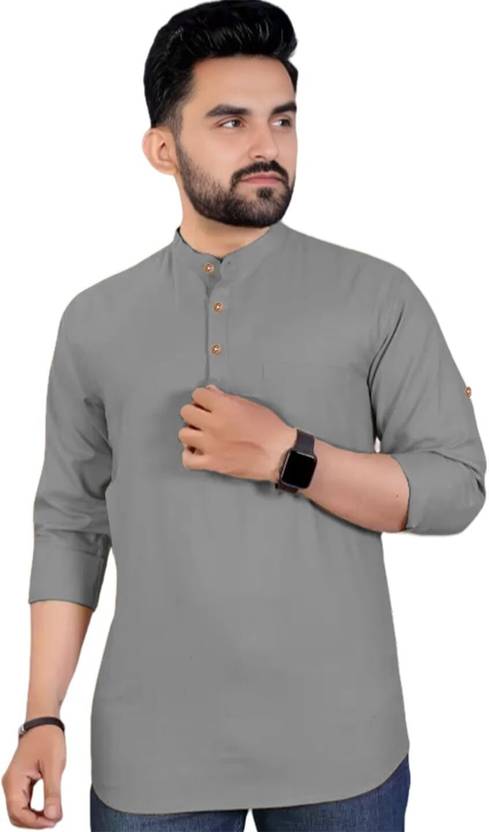 GUYS HUBB Men Solid Straight Kurta (Beige)