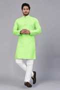 Premium Fabric – Made from high-quality cotton, ensuring comfort and breathability.::Stylish Design – Traditional yet modern design with plain solid colors::Perfect Fit – Tailored for a regular/comfort, suitable for all body types.::Occasion Wear – Ideal for festive occasions, weddings, religious events, or daily ethnic wear.::Complete Set – Includes both kurta and matching pajama/churidar.::Available Sizes – Wide size range from S to XXL (34 to 42)::Color Options – Multiple color choices to match your style::Made in India – Proudly crafted by Indian artisans with attention to detail. ::