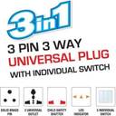 एम्बॉक्स 3 Way Extension Board 3 Pin Universal Socket Multi Plug with Individual Switch 3 सॉकेट सर्ज रक्षक (सफेद, नीला)