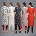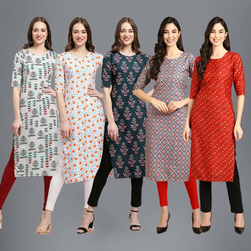 EthnicBasket Pack of 5 Women Printed Crepe Straight Kurta  (Multicolor)