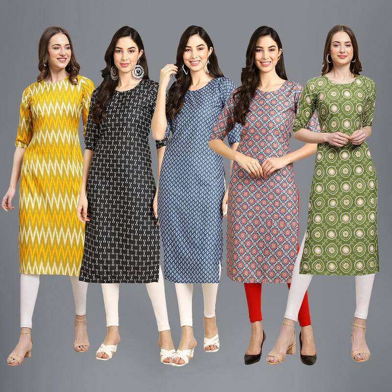 EthnicBasket Pack of 5 Women Printed Crepe Straight Kurta (Multicolor)