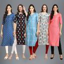 EthnicBasket Pack of 5 Women Printed Crepe Straight Kurta  (Multicolor)