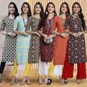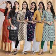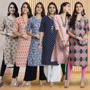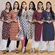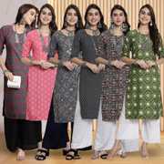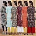 Pack of 6 Women Printed Crepe Straight Kurta (Multicolor)