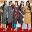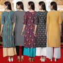 EthnicBasket Pack of 5 Women Printed Crepe Straight Kurta  (Multicolor)