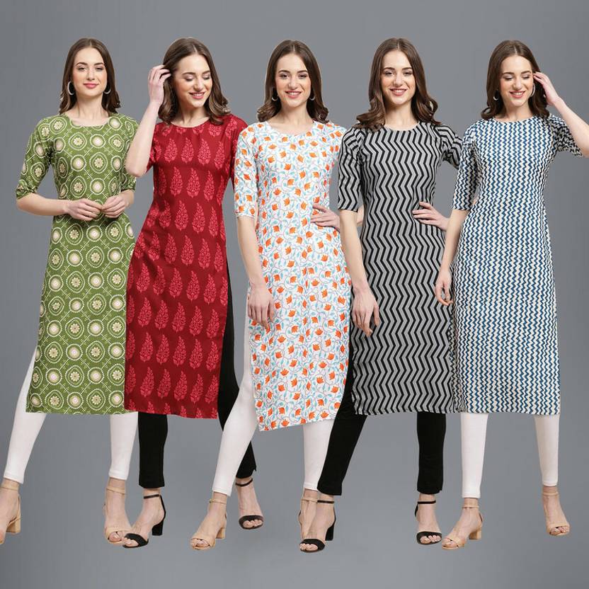 EthnicBasket Pack of 5 Women Printed Crepe Straight Kurta (Multicolor)