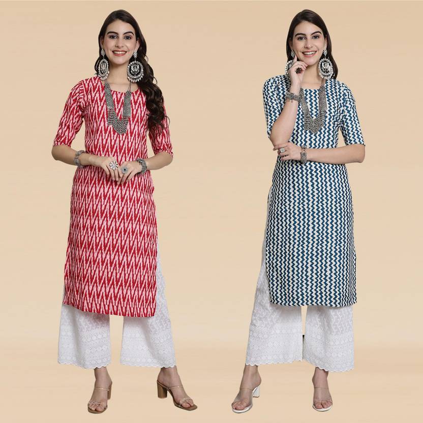 Pack of 2 Women Printed Crepe Straight Kurta (Multicolor)